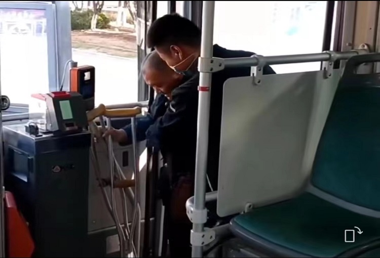 據(jù)29路公交車駕駛員陳陽回憶,9月26日上午,他執(zhí)行營運(yùn)任務(wù)到新嘉源工業(yè)鄰里中心站臺(tái)時(shí),看到有位老人拄著一雙拐杖正在候車,看到車子進(jìn)站,老人正艱難的踱步準(zhǔn)備上車。陳陽見狀立即主動(dòng)下車攙扶,小心翼翼地將老人扶到車上,并安排其在愛心座位就座后才放心回到駕駛室營運(yùn)。老人在開發(fā)區(qū)管委會(huì)下車又主動(dòng)攙扶幫忙下車。陳陽的暖心的服務(wù)被同在車內(nèi)的乘客捕捉到,并拍了下來。