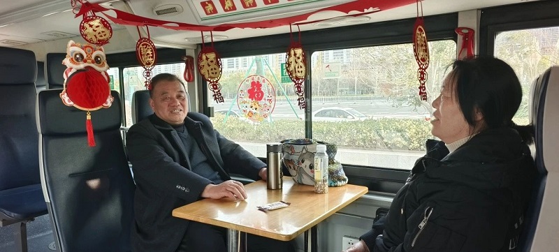 春節(jié)期間,公司增開的2條免費旅游專線,串聯(lián)了市區(qū)重點景區(qū)、特色街區(qū)和文博場館,方便市民乘客出游。新春主題車廂喜慶氣氛濃厚,給出行游玩的乘客送上特別的新春驚喜,讓市民出行之路溢滿濃濃的年味。