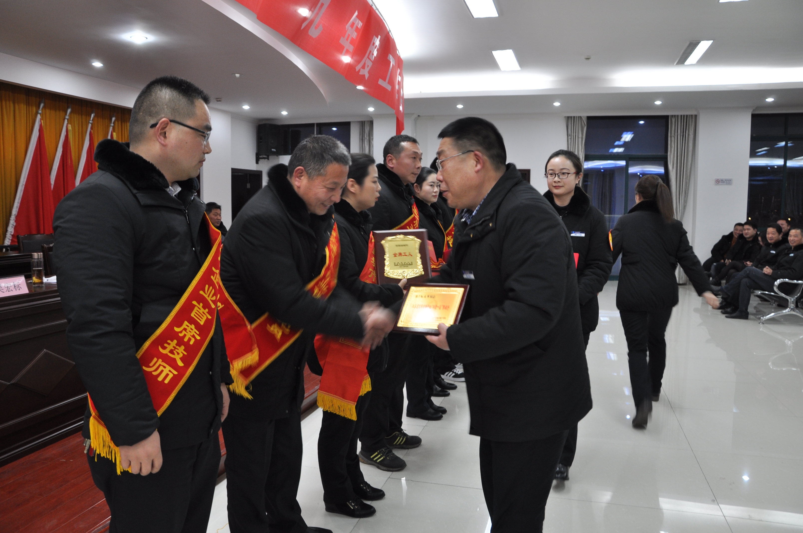 公司黨委書(shū)記、總經(jīng)理為獲得市級(jí)以上榮譽(yù)的先進(jìn)個(gè)人頒獎(jiǎng)