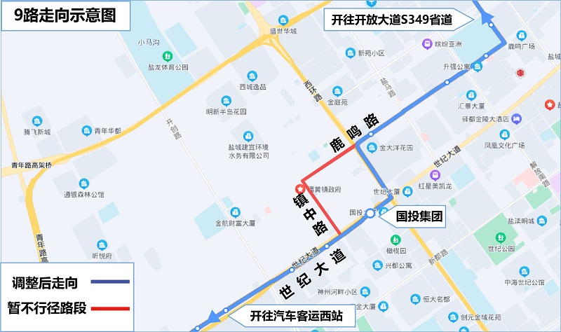 因鹿鳴路(西環(huán)路至鎮(zhèn)中路路段)道路封閉施工,自2022年6月30日起公交9路實行臨時改道行駛,具體如下: