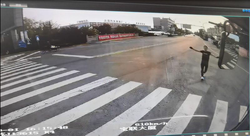 10月1日16時(shí)15分,K4線駕駛員姚廣峰正在執(zhí)行大岡開往鹽城方向的運(yùn)營(yíng)任務(wù),當(dāng)車輛行駛至寶聯(lián)大廈附近時(shí),發(fā)現(xiàn)前方不遠(yuǎn)處一輛清障車拖運(yùn)的小轎車正在起火,一位市民正著急的朝公交車跑來(lái),并揮手示意求助。