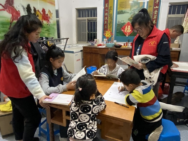 活動(dòng)中,志愿者與孩子們親切交流,了解他們的生活和學(xué)習(xí)情況,鼓勵(lì)孩子們要以積極的心態(tài)面對(duì)暫時(shí)的困境,用功讀書,用知識(shí)改變命運(yùn)。志愿者王星云、陸益帶領(lǐng)孩子們共同閱讀了《小英雄雨來》《論語》精彩片段,并向他們贈(zèng)送了閱讀書籍和文房四寶等學(xué)習(xí)用品。